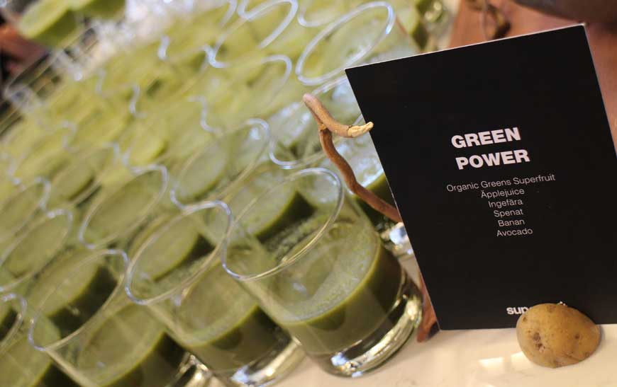 Igår minglade jag (tillsammans med Jessica som jag sprang in i) med Superfruit och smakade smoothies och snacks tillagat av Raw chef Viktor Ingemarsson. Jag hade önskat att det var lite mer matiga alternativ som presenterades, att göra smoothies och efterrätter känns som det lättaste i denna genre. Jag är mer intresserad av vad man kan göra till en vanlig middag, som en raw pizza eller lasagne exempelvis. Känns väldigt passande nu när sommaren kommer och jag är mer sugen på kallare och lättare mat än på vintern.
