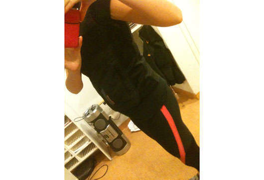 Som överdragströja innan och efter yogan hade jag idag en ljusblå/grön topp från Adidas Stella McCartney. Riktigt smidigt med knapparna så att jag kan stänga i mitten och ha öppet över magen. Tröjan går även utmärkt att yoga i om man är frusen av sig då ärmarna är vida och ger bra rörelseomfång. Men eftersom jag nu när jag är gravid är varm nästan jämnt yogade jag i ett längre linne från Nike och mjuka byxor.